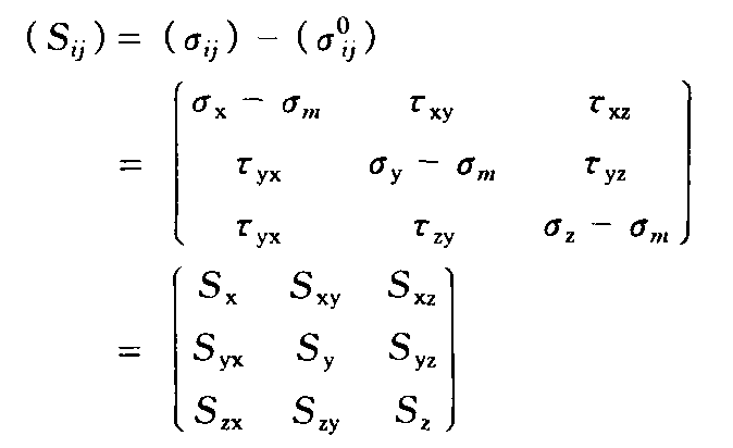 又称应力偏量。从应力张量中减去应力球形张 量而得到的一个张量。可写成